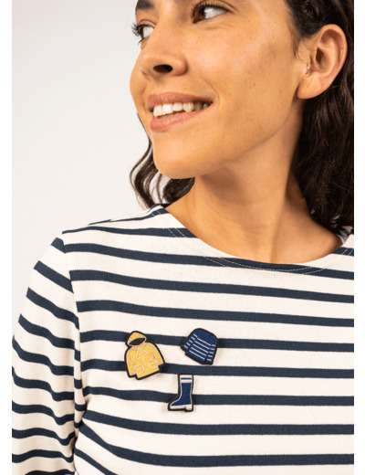 On reste bien au sec avec cette jolie broche brodée Ciré imaginée en partenariat avec Macon & Lesquoy. Brodée à la main, elle s'inspire des techniques de broderie des écussons militaires, et mêle notre univers marin à l'esprit décalé de Macon & Lesquoy.