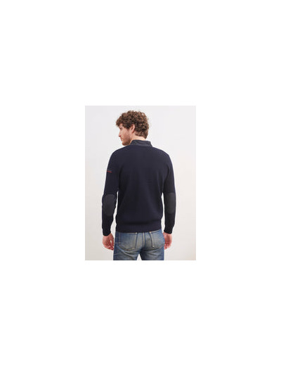 Reconnaissable à sa côte fantaisie, la touche de rouge qui signale la poche sur le bras gauche ou encore ses empiècements en toile qui ponctuent le modèle, au col, aux poches, sur l’ouverture zippée et sur les coudières. Le modèle navigateur s'affirme comme un iconique et concentre l’essence de l’esprit nautique de la tradition SAINT JAMES.