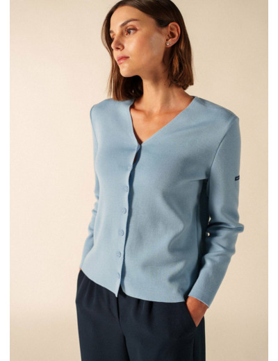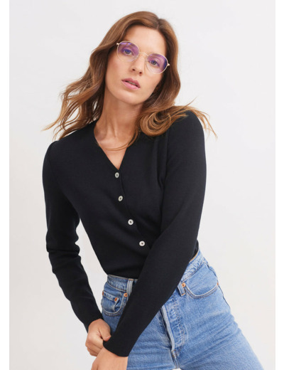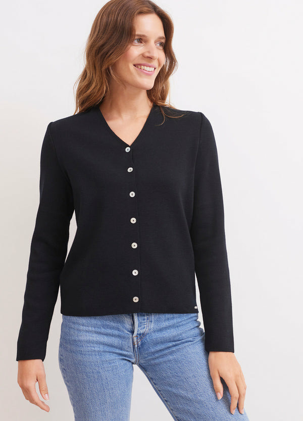 Gilet col V Brévands boutonné en maille de laine fine