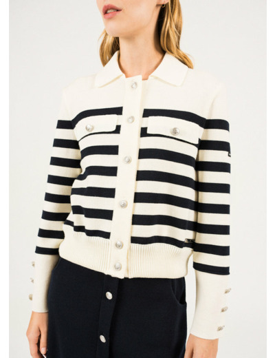 Elégant et féminin, le gilet Rollet révèle tout son potentiel porté à même la peau, tel un pull. Imaginé avec le styliste normand Romain Brifault, il sublime nos codes marins dans une version féminine et sophistiquée. - Veste