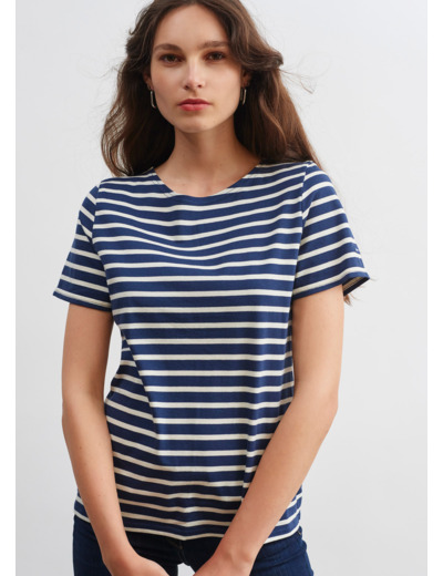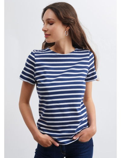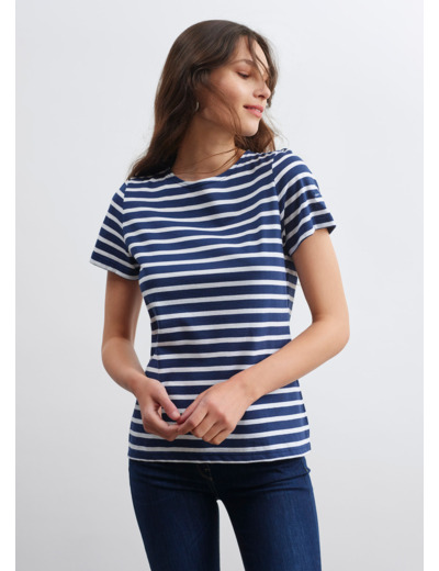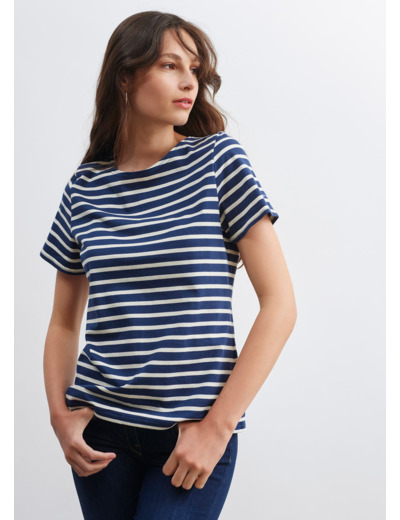 Inspirée des marinières classiques et féminisée, la marinière Etrille II affirme une identité balnéaire avec ses rayures emblématiques. Le modèle manche courte est une parade aux chaleurs estivales.