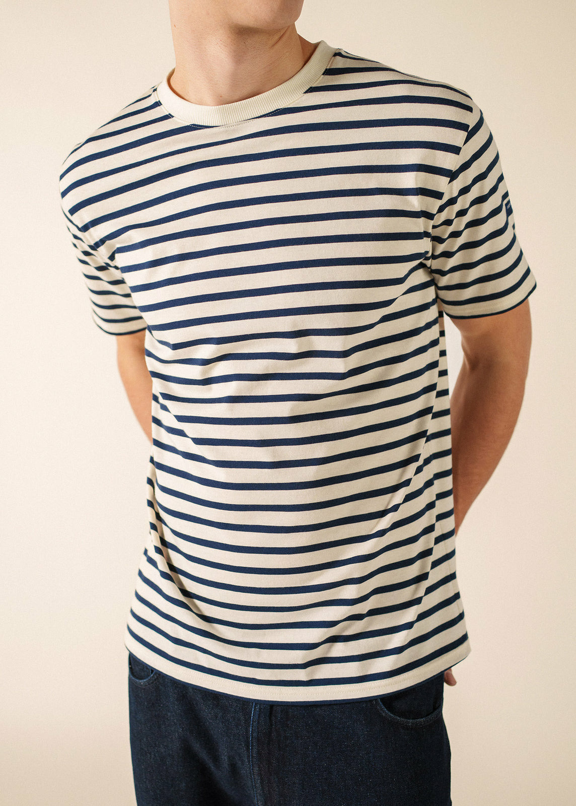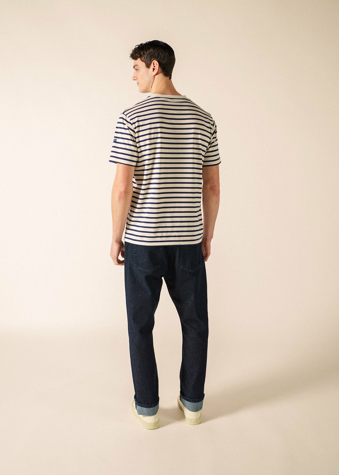 Certains vêtements s'imposent comme des évidences du vestiaire estival, et la marinière Plouider incarne parfaitement cette idée. Fabriquée en France dans nos ateliers, elle est conçue dans le même jersey 100% coton que notre célèbre marinière Minquiers. Elle possède une coupe droite et son col rond est fini par un bord-côtes pour une tenue soignée. Avec ses manches courtes, elle se présente comme la pièce fondamentale et facile à porter des beaux jours