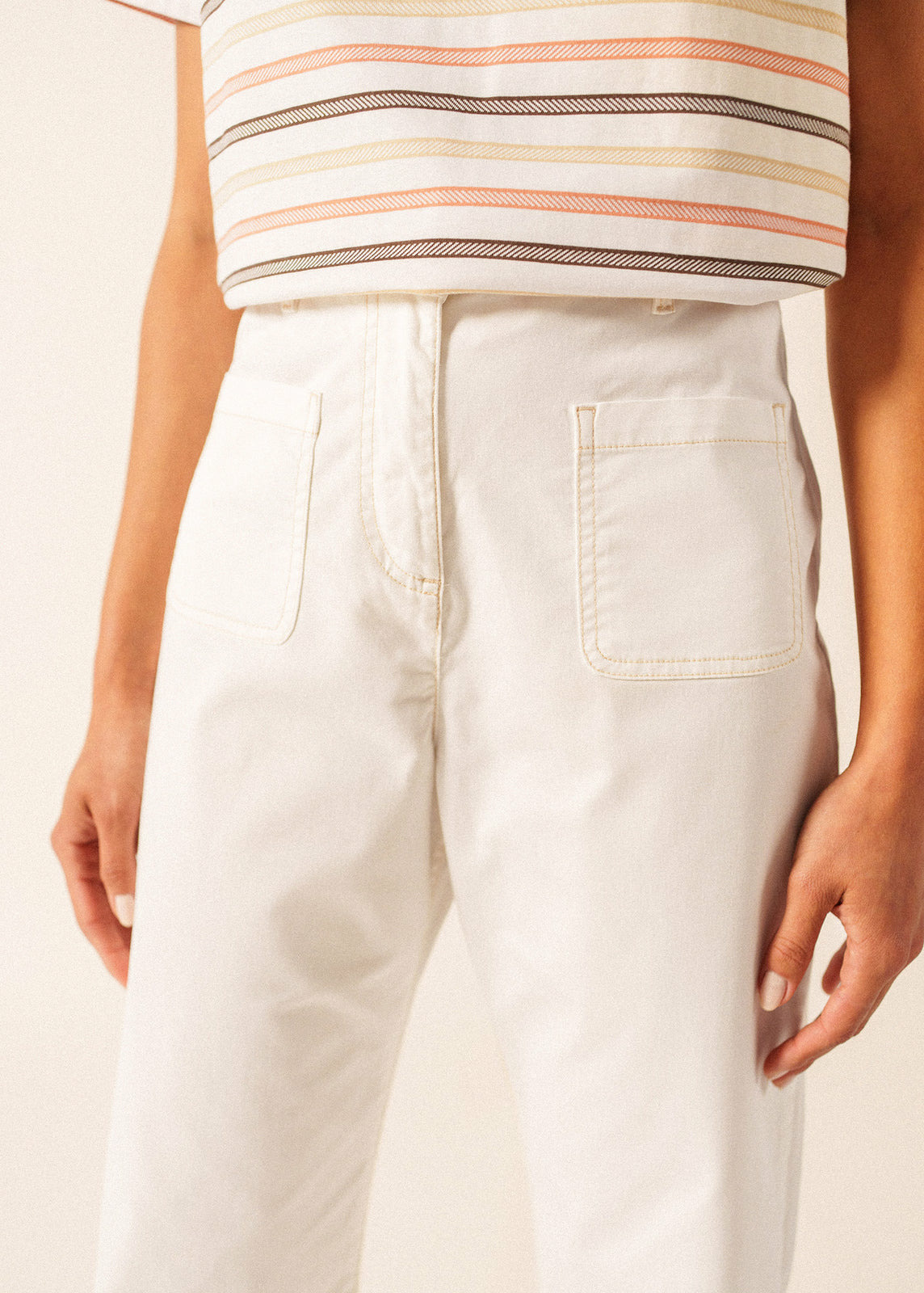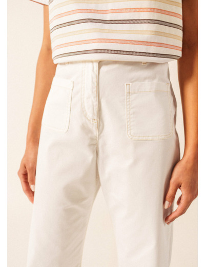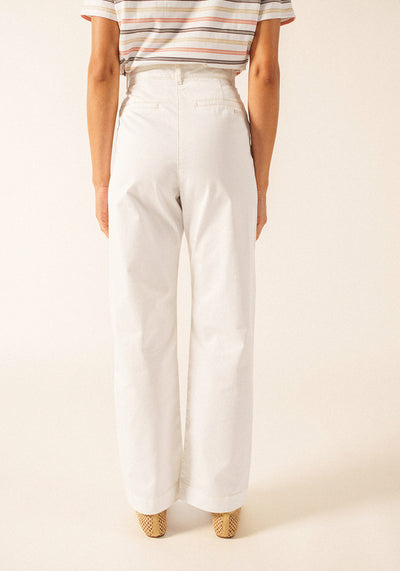 Une balade le long des quais, un café pris sur le pouce avant de retrouver des amis, le pantalon Enza est l’une de ces pièces qui vous accompagnent sans encombre tout au long de la journée. Sa matière en twill de coton lui donne une bonne tenue, tandis que sa coupe droite dessine une ligne simple et nette, facile à intégrer dans vos tenues. Les surpiqûres contrastées viennent discrètement souligner la structure du vêtement, un détail que vous retrouverez au niveau des poches plaquées à l'avant. Pour le côté fonctionnel, des poches passepoilées sont placées au dos, et la fermeture se termine par un bouton singulier avec son contour à l'effet brûlé.