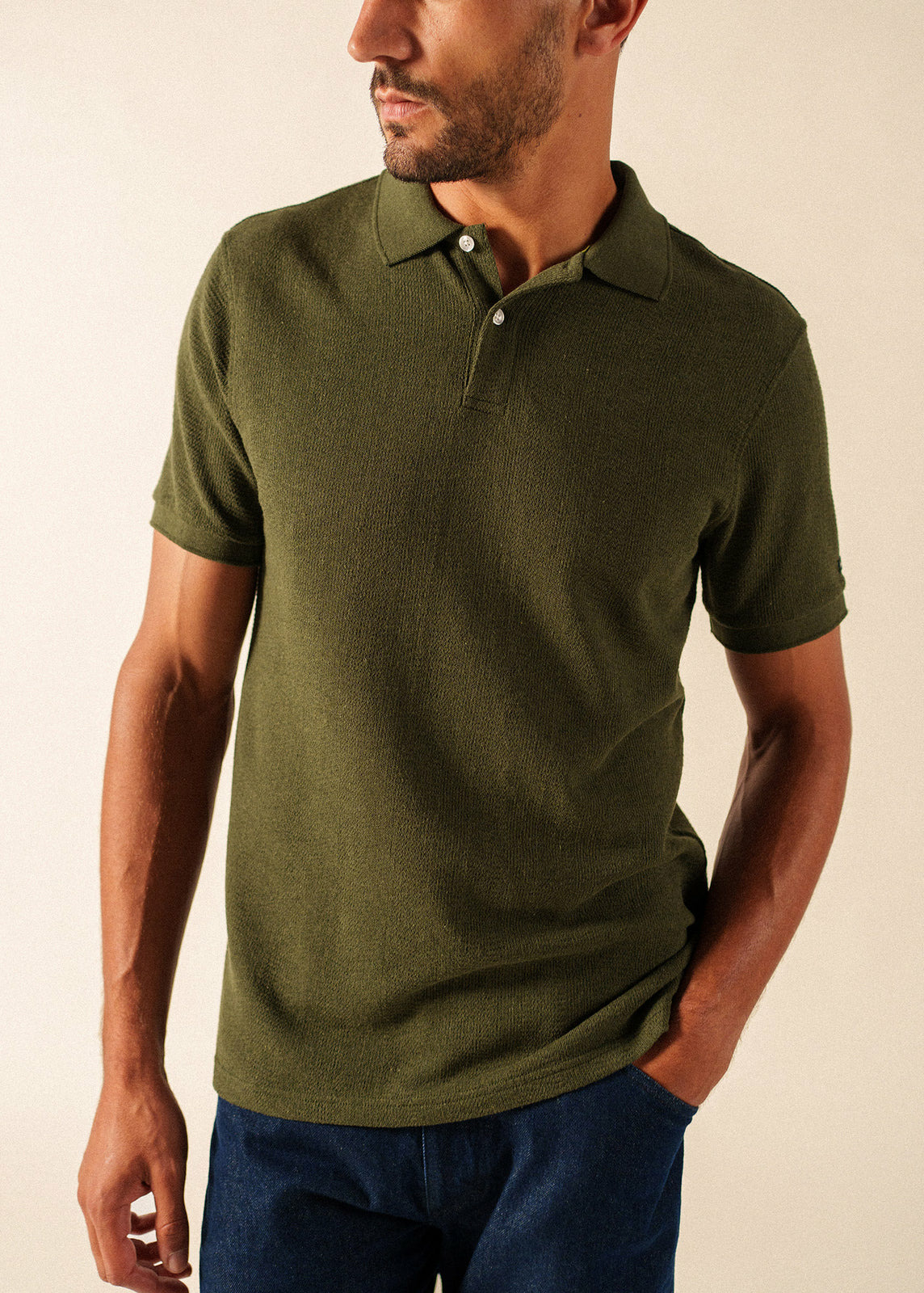 La sensation d'une matière sur la peau est ce qui définit souvent un vêtement que l'on apprécie porter au quotidien. Le polo Ruben est justement conçu autour de sa maille jacquard, qui lui donne une texture subtilement travaillée et un toucher singulier. Un autre détail se trouve à l'intérieur du col, où une bande de couleur apporte une note de contraste discrète. Il présente un col polo classique et des manches courtes, et sa coupe droite est pensée pour vous laisser une bonne aisance dans vos mouvements. - Polo