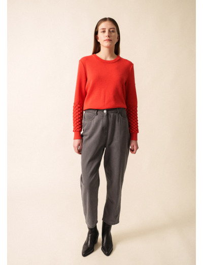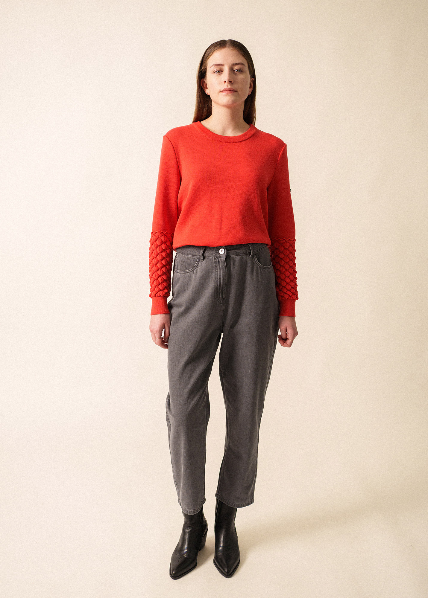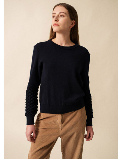 Un pull en jersey de laine, confectionné avec expertise dans nos ateliers français de Saint-James. Le Pull Cluses se distingue par son col soigneusement remaillé et ses finitions en bord-côte au bas des manches et du corps pour un maintien impeccable. La particularité de cette pièce réside dans ses manches ornées d'un motif en relief qui apporte une touche de fantaisie et d'originalité à ce vêtement. Réalisé avec le même fil de qualité que notre emblématique pull marin Marée, ce modèle s'inscrit dans une collection cohérente aux côtés de la robe Cluses et de l'écharpe Cluses.