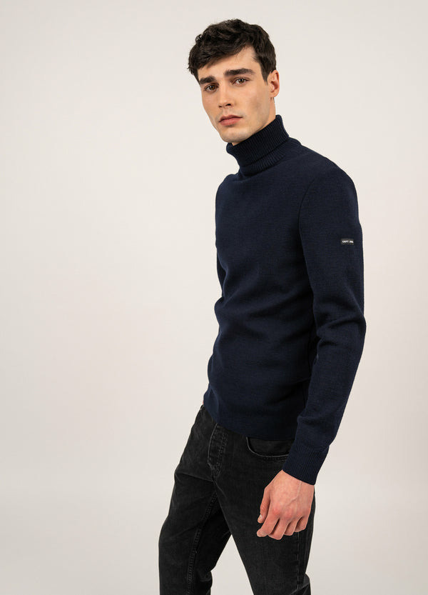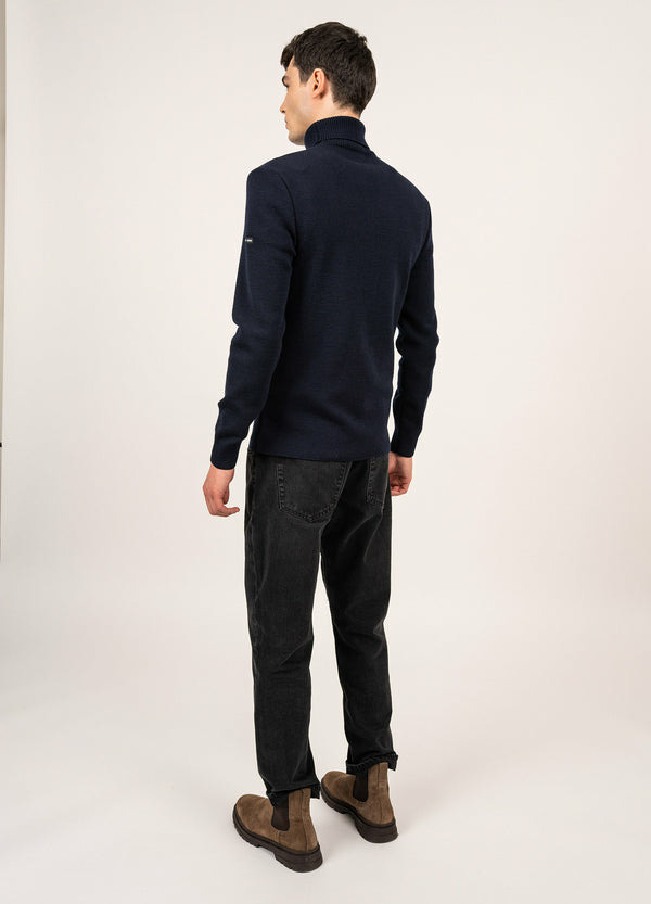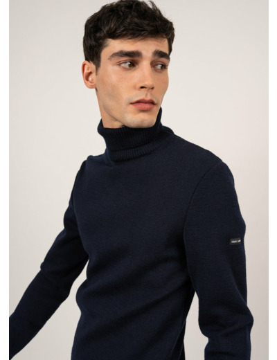 Pull col roulé Bretagne uni, en laine