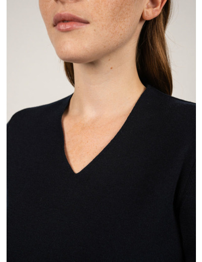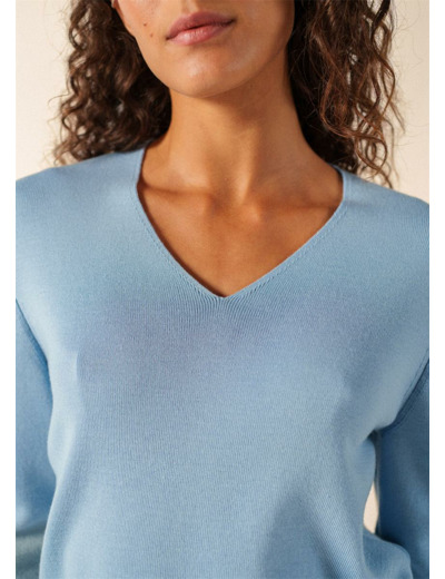 Pull encolure V en côte 1x1.