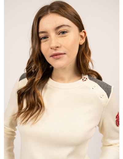 Version féminine du pull Morain Arpin, le pull Combe Arpin reflète les valeurs communes à nos deux univers : des produits de qualité, en laine, créés et fabriqués dans le respect de nos employés, fournisseurs et clients. Comme sur le modèle homme, nous retrouvons des empiècements en drap de laine au niveau de épaule, ainsi qu'une étiquette SAINT JAMES x Arpin appliquée sur la manche gauche. Un pull au look sobre, plein de savoir-faire, qui deviendra rapidement un indispensable.