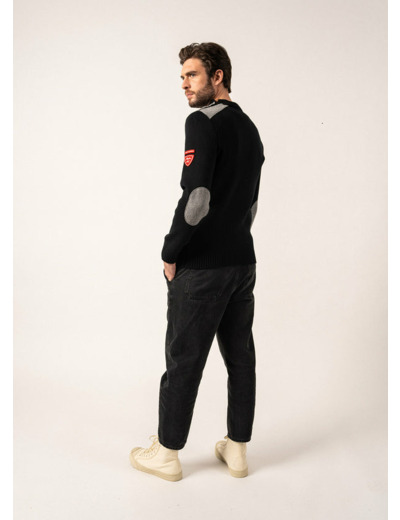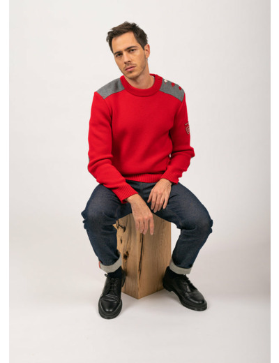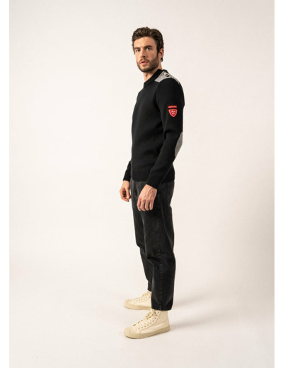 Le Moraine Arpin est un pull en laine inspiré du design de nos pulls marins traditionnels. On aime le relief apporté par ses coudières et empiècements épaule en toile de laine Arpin, ainsi que son col rond remaillé et son boutonnage épaule.