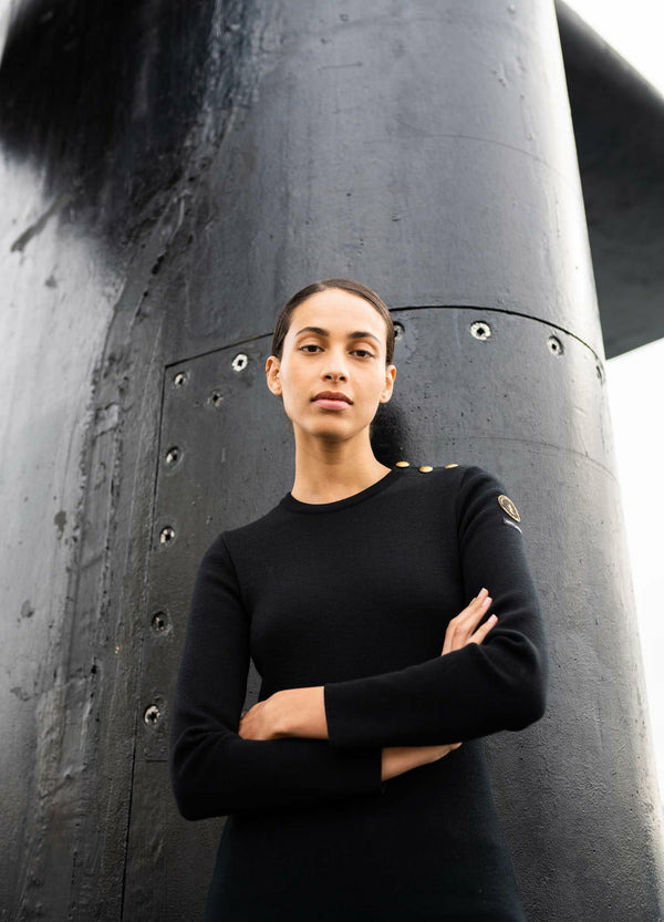 Inspiré des traditionnels pulls marins en laine vierge, le modèle Astrolabe est une version plus féminine et plus douce, confectionnée en laine mérinos. Authentique, le pull Astrolabe possède un col rond remaillé ainsi qu'un boutonnage épaule, caractéristiques des chandails marins traditionnels.