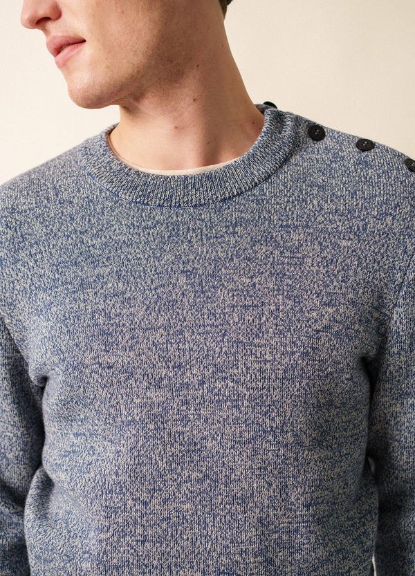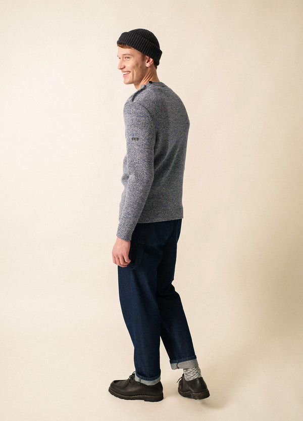 Un pull marin qui revisite les traditions avec subtilité. Le Cancale Mouliné associe le fil emblématique du Matelot, adouci pour l’occasion, à un travail minutieux de torsade de fils, créant un effet chiné régulier. Sa laine en côte 1x1 renforce son allure authentique et en fait une pièce aussi chaude que singulière dans votre garde robe.