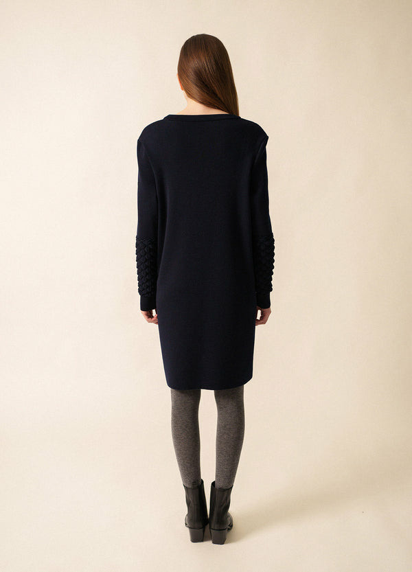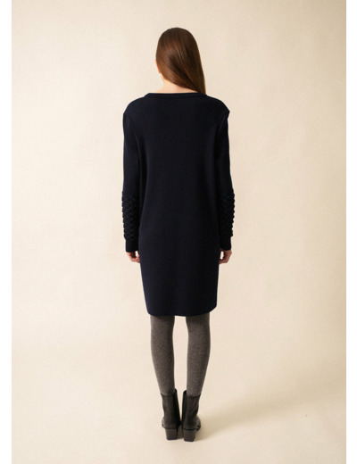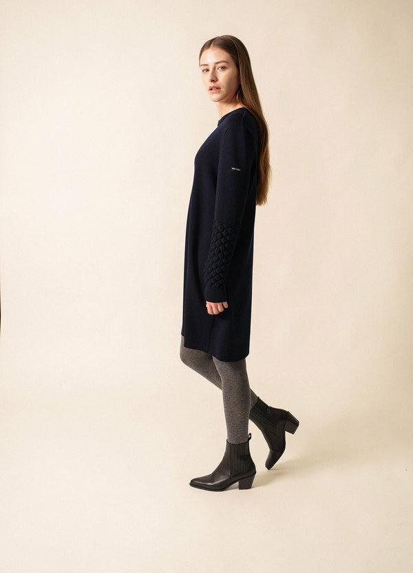 La robe Cluses est confectionnée en 100% laine, garantissant de vous garder au chaud loin du froid hivernale. Réalisée en France dans les ateliers de Saint-James, elle reflète un savoir-faire artisanal de qualité. La particularité de cette robe réside dans ses manches ornées d'un motif en relief, apportant une touche de fantaisie. Elle fait également partie de la même famille que le pull Cluses et l'écharpe Cluses.