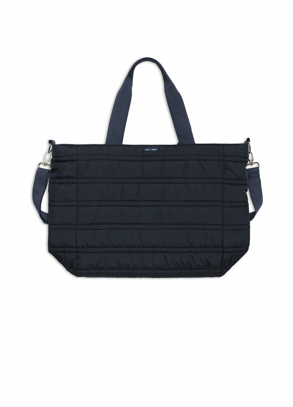 Ce sac à main présente une structure matelassée inspirée des doudounes, offrant un aspect contemporain. L'intérieur est décoré des rayures caractéristiques de SAINT JAMES. Le modèle comprend une poche intérieure et se ferme par une fermeture éclair. Sa conception polyvalente permet deux options de port : à la main ou à l'épaule grâce à sa bandoulière incluse.