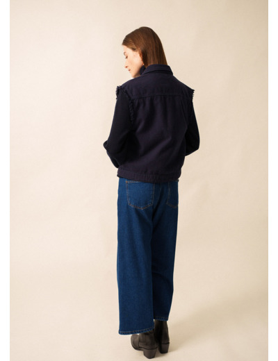 La veste Ste Inès se distingue par sa confection en coton et en laine. Ses emmanchures ornées de délicates franges apportent une touche d'originalité à la pièce. Pratique au quotidien avec ses quatre poches extérieures, dont deux poitrine, elle se ferme par des boutons à queue ancre marine, signature du style nautique de SAINT JAMES. Une pièce polyvalente pour vos tenues de mi-saison.