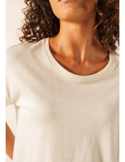 Lorsque les beaux jours arrivent, le choix de la matière d'un t-shirt est essentiel. Le modèle Lille est confectionné dans un jersey qui mêle du lin, une fibre reconnue pour sa légèreté, et du coton qui vient adoucir le contact sur la peau. Sa coupe droite, avec son encolure ronde et ses manches courtes, est pensée pour s'intégrer facilement à votre vestiaire estival. Ce modèle est entièrement fabriqué en France dans les ateliers Lemahieu, un nom reconnu pour son savoir-faire local.