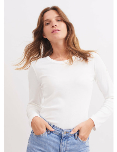 T-shirt à manches longues en coton côte 1x1