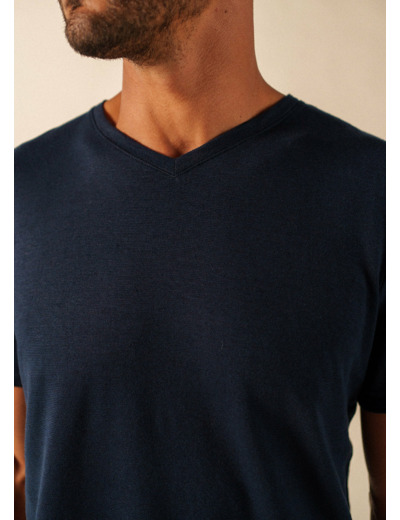La sensation d'un tissu léger et respirant sur la peau est l'un des plaisirs simples des beaux jours. C'est précisément ce que propose le t-shirt Roubaix avec son jersey composé de 60% lin et 40% coton. Fabriqué en France par Lemahieu, il présente une allure sobre avec son col V et sa coupe droite. Il partage la même exigence de qualité que son équivalent féminin, le t-shirt Lille, et ses manches courtes en font une pièce évidente pour composer vos tenues estivales. - Tee-shirt
