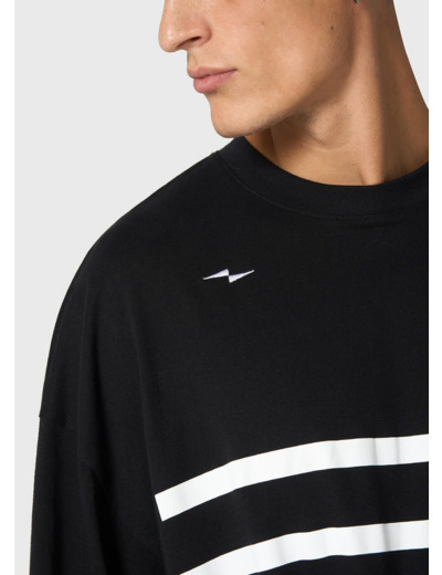 Confectionné dans nos Ateliers, le t-shirt à manches longues Yocaen est un hommage à nos racines normandes, partagées avec Orelsan. Au dos, deux léopards, emblème de la Normandie, ornent un t-shirt au design sobre et à la coupe oversize, moderne et urbaine. A l'avant, deux bandes blanches rappellent nos iconiques marinières, et une broderie Spike rappelle la collaboration avec AVNIER.