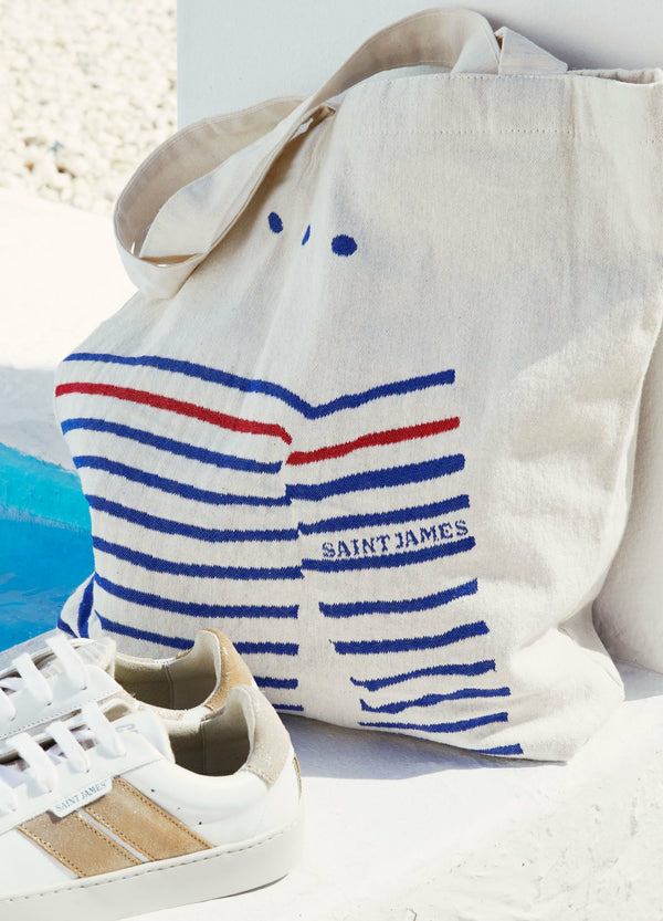Indispensable, le tote bag vous permet de ranger facilement veste, gourde, carnet et autres effets personnels. Avec son motif marinière sur l'avant, ce sac rend hommage à notre pièce phare. et notre héritage marin.