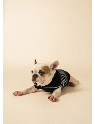 Le style se partage même avec son plus fidèle compagnon. Tricoté avec soin dans nos ateliers en France, ce pull habille votre animal d'une silhouette élégante grâce à sa maille en côte 1x1 et son col roulé. Sa véritable surprise se dévoile dans l'obscurité totale : après avoir été exposé à la lumière naturelle ou artificielle pendant près de trois heures, ses rayures diffusent une lueur pendant près d'une à deux heure, un détail amusant et inattendu. Il s'intègre parfaitement à la collection phosphorescente, vous offrant l'occasion d'assortir votre propre marinière Minquiers, bonnet ou pull Binic au sien pour des moments de complicité partagés.