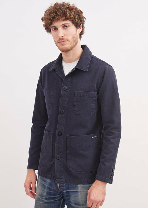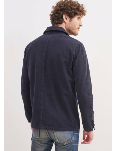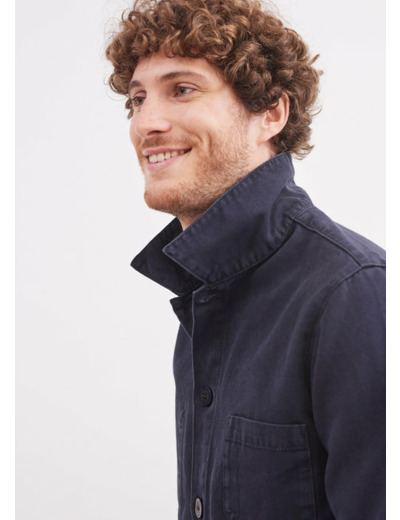 A la croisée du bleu de travail et de la vareuse, la veste sirocco souligne avec authenticité l'héritage marin de notre maison.