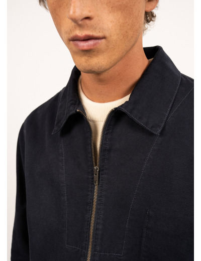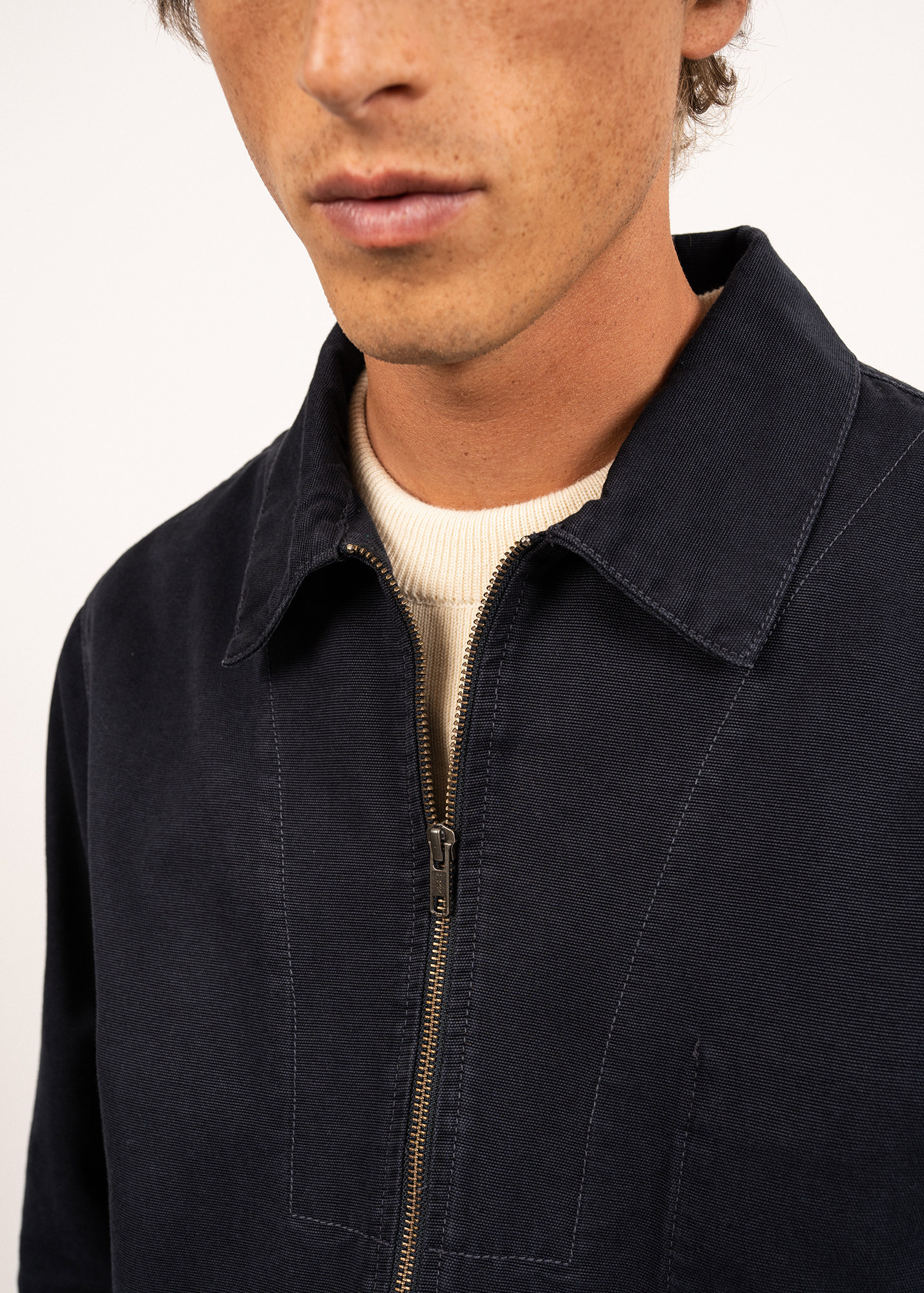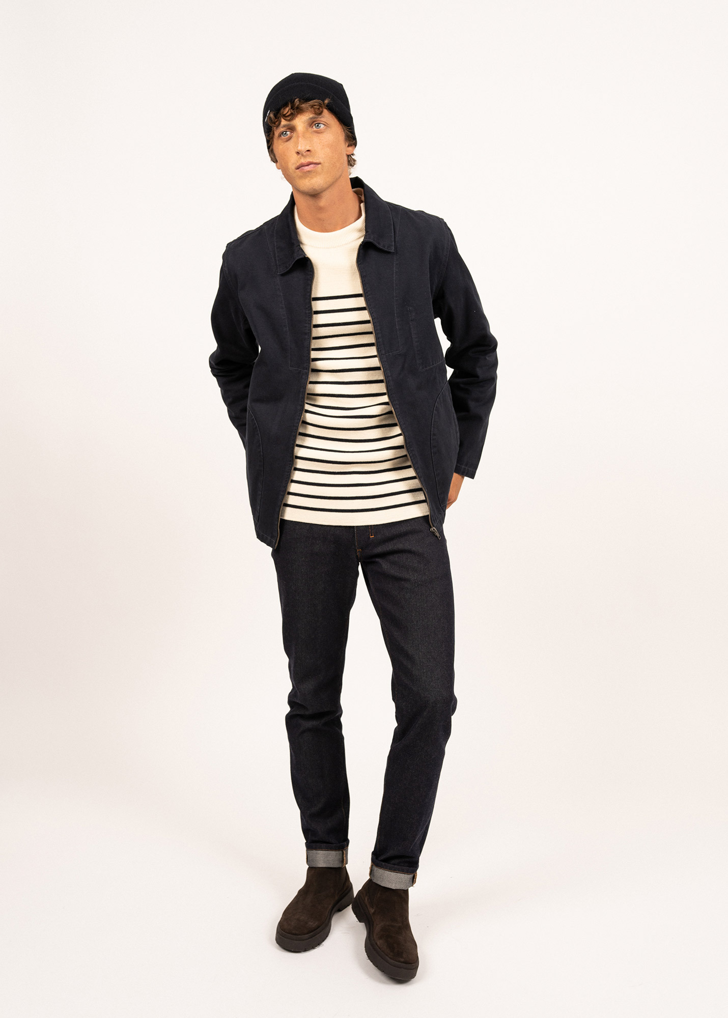Confectionné dans un canevas de coton, le même que celui de nos vareuses traditionnelles la veste Zéphir prend des allures côtières en revisitant le style authentique du marin.- Canevas- Veste zippée- Esprit vareuse- Col polo- Poches basses double passepoils- Poche intérieure plaquée- Coton (100%)- Coupe droite- Longueur : 74 cm