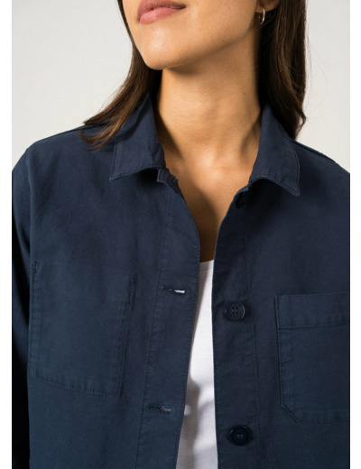 Inspirée de notre iconique Sirocco, la veste Alizé est une veste à l'esprit workwear, avec ses poches plaquées et sa coupe droite. Confectionnée dans une toile mêlant coton et élasthanne, elle conserve son élasticité, pour une pièce à l'ADN et au style workwear et authentique, confortable et stylée.