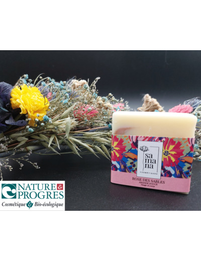 Savon à l’Huile d'Amande Douce – Note florale Tout type de peaux – Idéal peaux sèches Enrichi à l’huile d’amande douce. Mousse crémeuse accompagnée d’une odeur fraîche et florale. Fabriqué à la main en saponification à froid : méthode qui permet de conserver la qualité des ingrédients. Nos ingrédients ont été soigneusement sélectionnés pour leurs qualités et leurs bienfaits. Nos savons, validés par une toxicologue sont labelisés Nature et Progrès (le plus strict des labels) qui vous garantit la qualité des matières premières. Nos étiquettes sont imprimées sur du papier recyclé. Les Ingrédients en français car tout le monde ne parle pas le latin : Ingrédients : Huiles & beurres saponifiés (olive* karité*- coco*- cacao*) glycérine - Huile d’amande douce*- Argiles blanche et rose - Huile essentielle Petit grain bigaradier* Issus de l’agriculture biologique* Ingrédients INCI : Sodium olivate* - Sodium cocoate* - Sodium shea butterate* - Aqua - Glycerin -Sodium cocoa butterate* Prunus amygdalus dulcis oil* Citrus aurantium amara leaf/twig oil* - Butyrospermum parkii butter* - Kaolin – Olea europaea fruit oil* - Montmorillonite – Illite – Cocos nucifera oil* - Theobroma cacao seed butter* – Linalool** – Geraniol** – Limonene** - Citral** ** Naturellement présents dans les huiles essentielles A conserver à l’abri de la lumière Faire sécher entre chaque utilisation En cas de contact avec les yeux, rincez abondamment Ne pas ingérer Ne pas utiliser en cas d’allergie à l’un des composants Ne pas utiliser chez l’enfant de moins de 3 ans et la femme enceinte ou allaitante.
