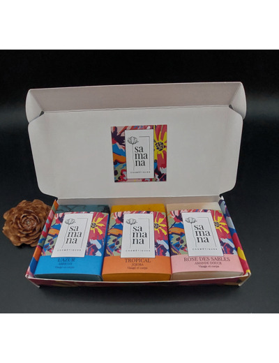 Coffret de 3 savons de 100 gr au choix dans la gamme - Labelisés Nature & Progrès - Ingrédients biologiques - Merci de préciser vos choix dans votre commande