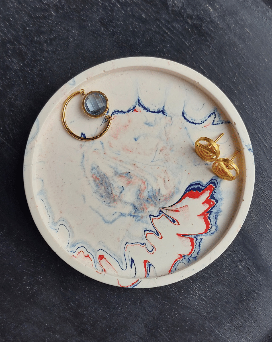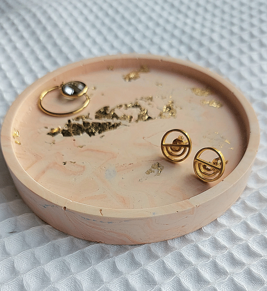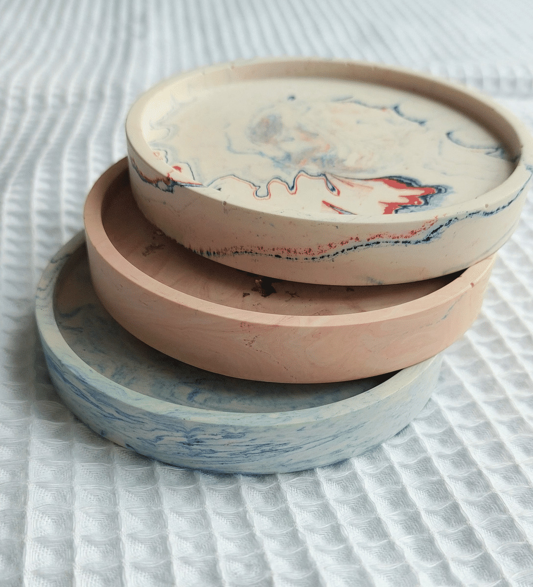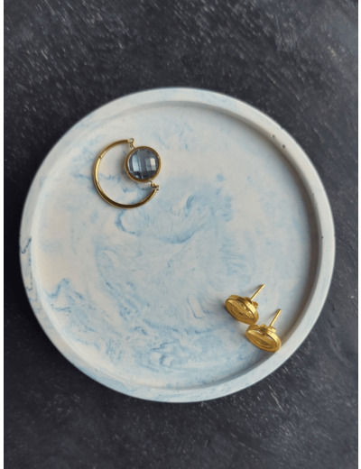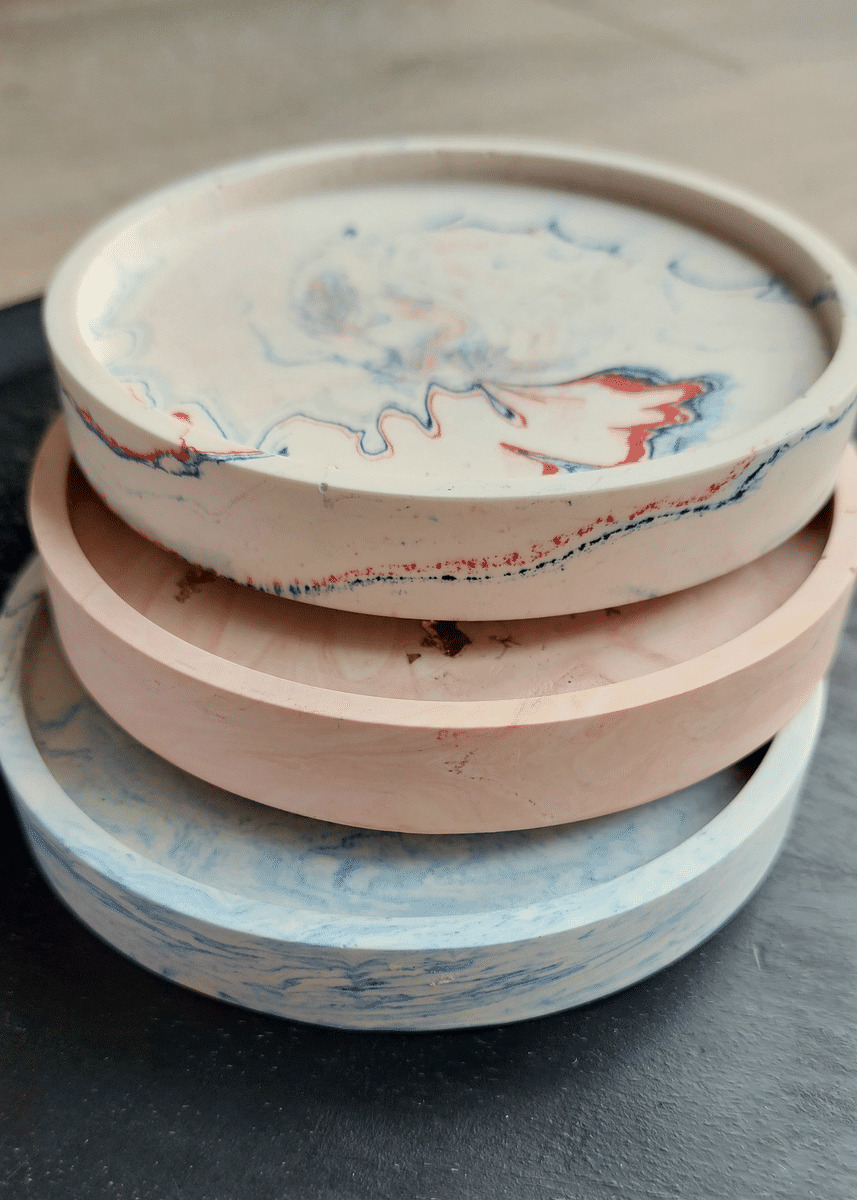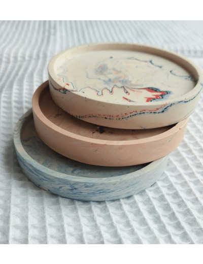Qu’est-ce que la Jesmonite ? C’est un mélange de gypse (pierre à plâtre) et d’acrylique. Ce mélange est souvent utilisé pour les décors de film et théâtre. Solide, durable, léger, non toxique et respectueux de l’environnement. Chaque objet est protégé par un imperméabilisant incolore.