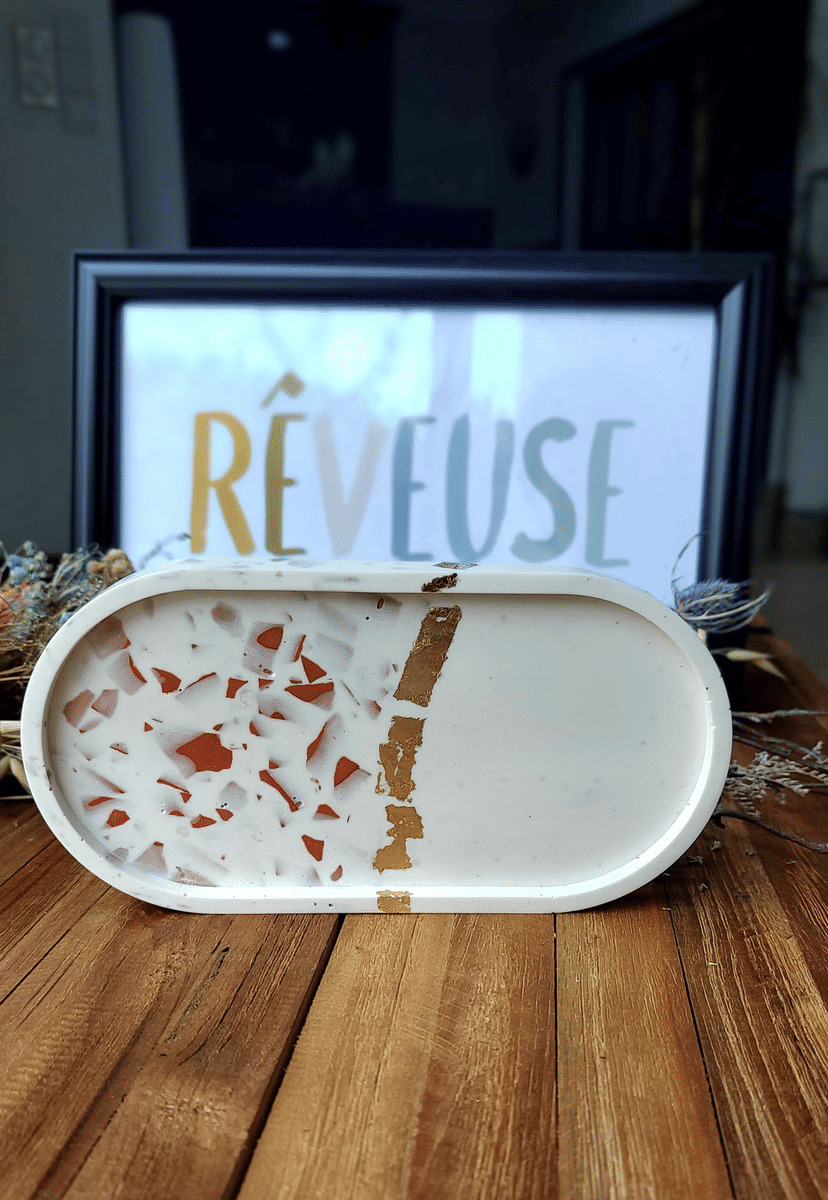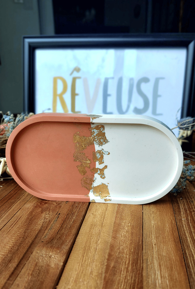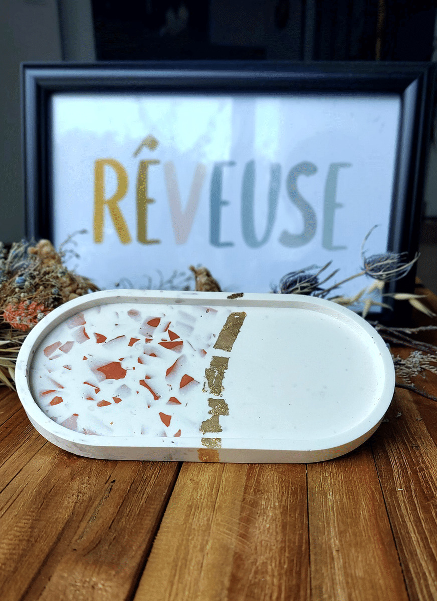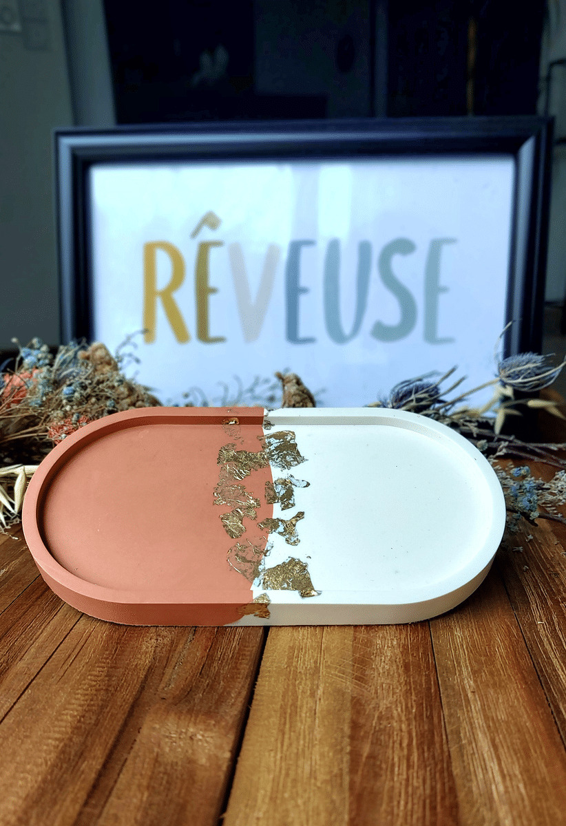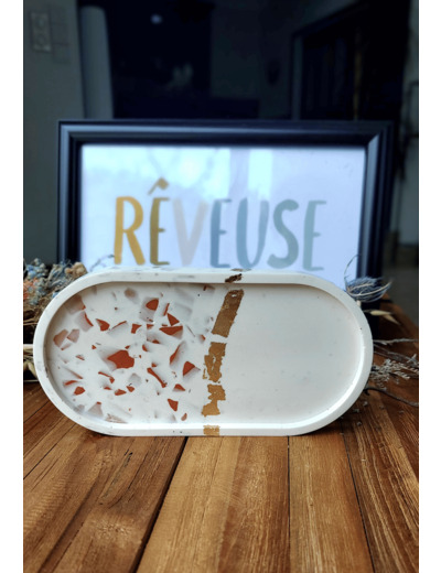 Qu’est-ce que la Jesmonite ? C’est un mélange de gypse (pierre à plâtre) et d’acrylique. Ce mélange est souvent utilisé pour les décors de film et théâtre. Solide, durable, léger, non toxique et respectueux de l’environnement. Chaque objet est protégé par un imperméabilisant incolore.