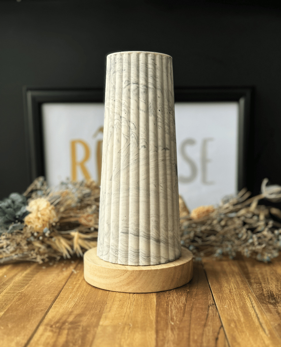 Qu’est-ce que la Jesmonite ? C’est un mélange de gypse (pierre à plâtre) et d’acrylique. Ce mélange est souvent utilisé pour les décors de film et théâtre. Solide, durable, léger, non toxique et respectueux de l’environnement. Chaque objet est protégé par un imperméabilisant incolore.
