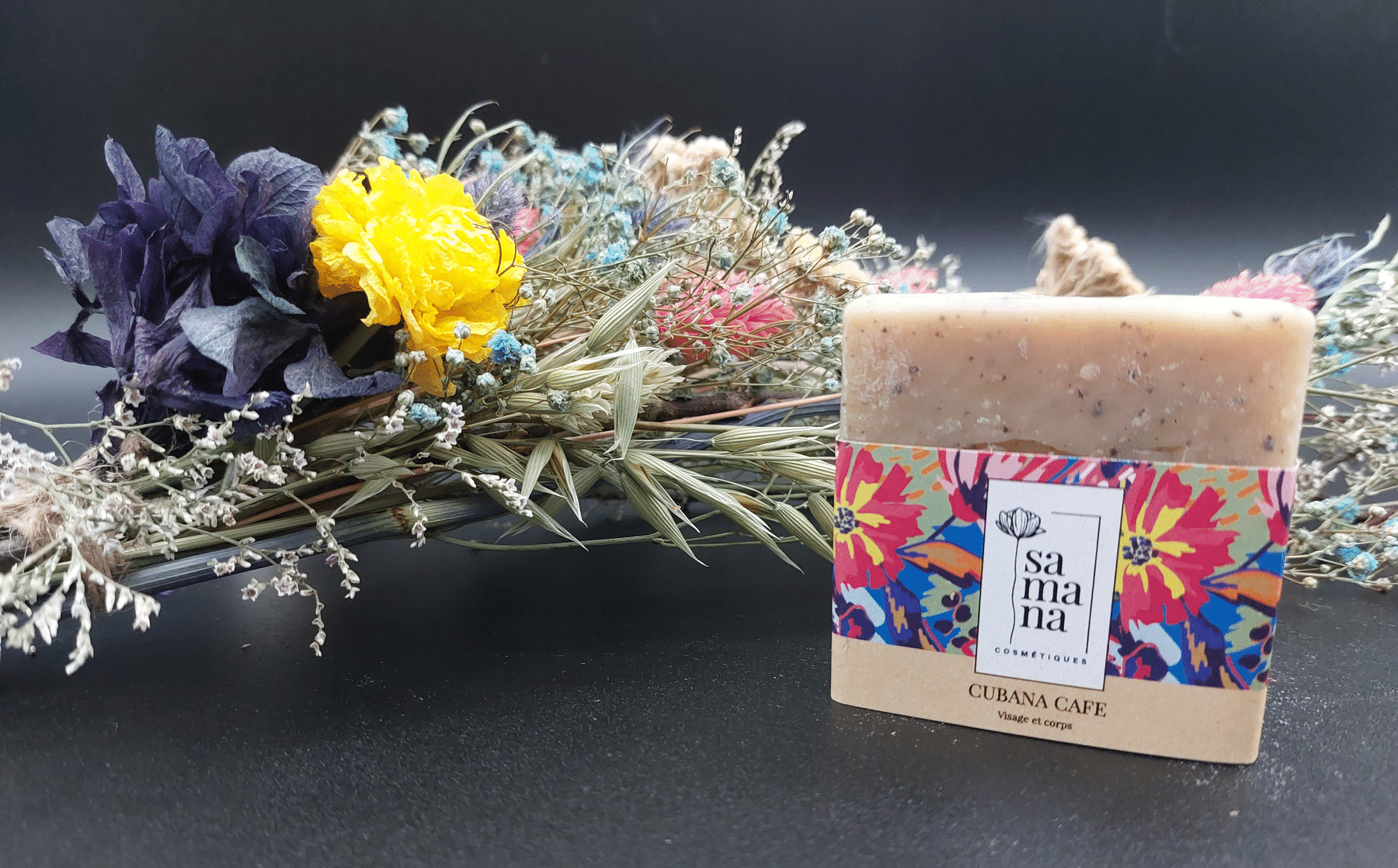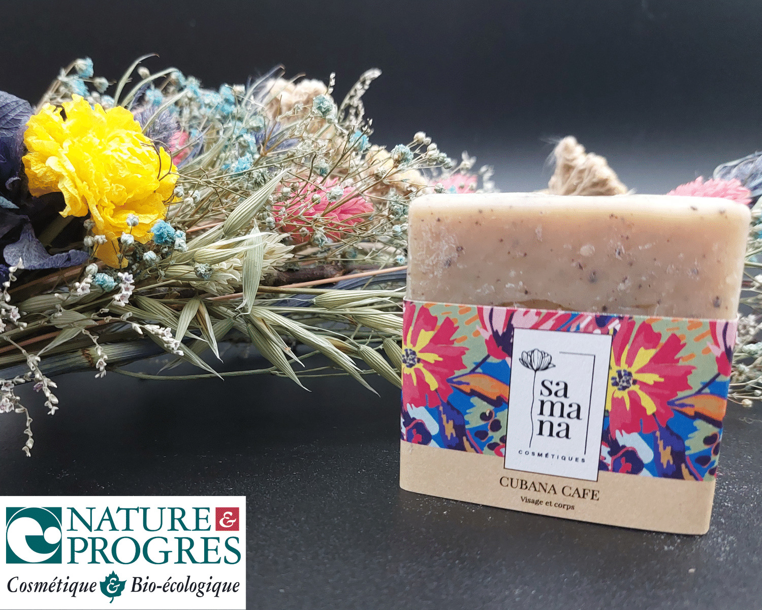 Savon exfoliant au marc de café – Note Boisée Tout type de peaux Exfoliant au marc de café pour un gommage tout doux. Il redonnera de la douceur à votre peau après l'avoir débarrassée des peaux mortes. Note boisée du cèdre de l’atlas et patchouli. Fabriqué à la main en méthode de saponification à froid qui permet de conserver la qualité des ingrédients. Cet article en 50 gr n’est éligible à l’envoi par transporteur qu'à partir de 2 exemplaires. Nous sommes dans une démarche éco-responsable et souhaitons limiter l’impact sur l’environnement. Nos ingrédients ont été soigneusement sélectionnés pour leurs qualités et leurs bienfaits. Nos savons, validés par une toxicologue sont labelisés Nature et Progrès (le plus strict des labels) qui vous garantit la qualité des matières premières. Nos étiquettes sont imprimées sur du papier recyclé. Les Ingrédients en français car tout le monde ne parle pas le latin : Ingrédients : Huiles & beurres saponifiés (olive* karité*- coco*- cacao*) glycérine - Charbon*Café* - Argile blanche Huiles essentielles de cèdre de l’atlas* et patchouli* Issus de l’agriculture biologique* Ingrédients INCI : Sodium olivate* - Sodium cocoate* Sodium shea butterate* - Glycerin - Sodium cocoa butterate* - Aqua - Butyrospermum parkii butter*- Olea europaea fruit oil* - Cocos nucifera oil* - Cedrus atlantica bark oil* - Pogostemon cablin leaf oil* - Theobroma cacao seed butter* - Kaolin - Coffea arabica seed extract* - Coffea arabica seed powder* - Charcoal powder* A conserver à l’abri de la lumière Faire sécher entre chaque utilisation En cas de contact avec les yeux, rincez abondamment. Ne pas ingérer. Ne pas utiliser en cas d’allergie à l’un des composants. Ne pas utiliser chez l’enfant de moins de 3 ans et la femme enceinte ou allaitante.
