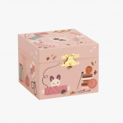 Boîte à musique coffret illustrée des dessins délicats de Lucille Michieli. Ouvre la boîte et regarde tourner le chat et sa bobine de fil, sur une douce mélodie… Sur le côté, un petit tiroir permet de ranger ses précieux secrets…