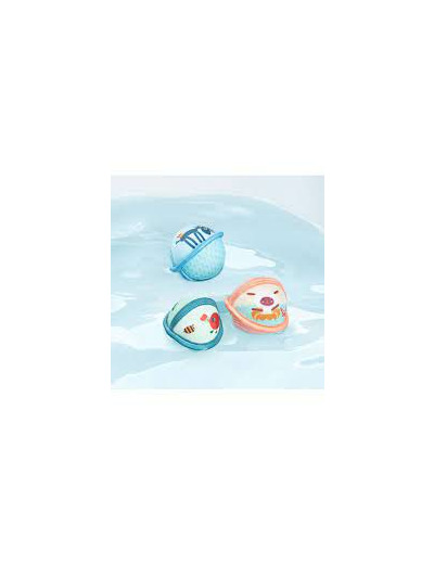Ces 3 balles de bain flottantes en différentes dimensions représentent des animaux de la ferme. Vos petits poissons s'amuseront à lancer et rattraper les balles dans l'eau et exerceront leur aptitude à manipuler une balle, mais aussi leur coordination main-œil. Amusement garanti! Housse amovible pour faciliter le lavage.