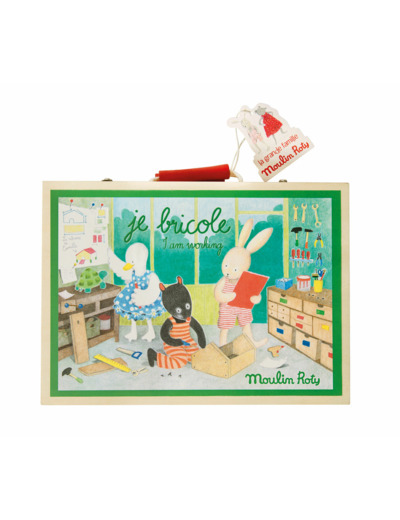 Valise à outils, établi de voyage en bois Moulin Roty, collection La Grande Famille.