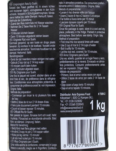 Riz pour sushi avec contenu: 1x1 kg. Origine de italie de qualité supérieure. Marque: royal orient. Grocery.