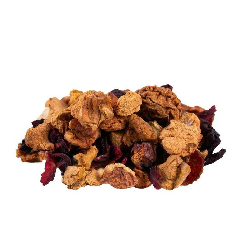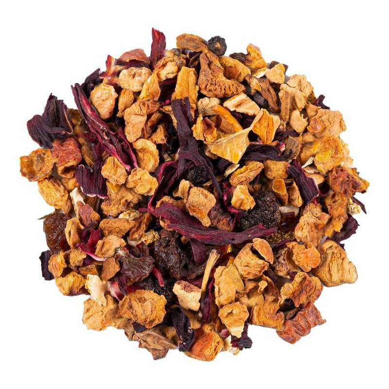 Pomme, hibiscus, raisin (raisin, huile végétale), cynorrhodon, bâtons de cannelle, écorces d'orange, arôme naturel d'orange, clou de girofle, poivre noir, arôme naturel. Mélange premium élaboré avec des ingrédients issus de l'agriculture durable et des arômes naturels.