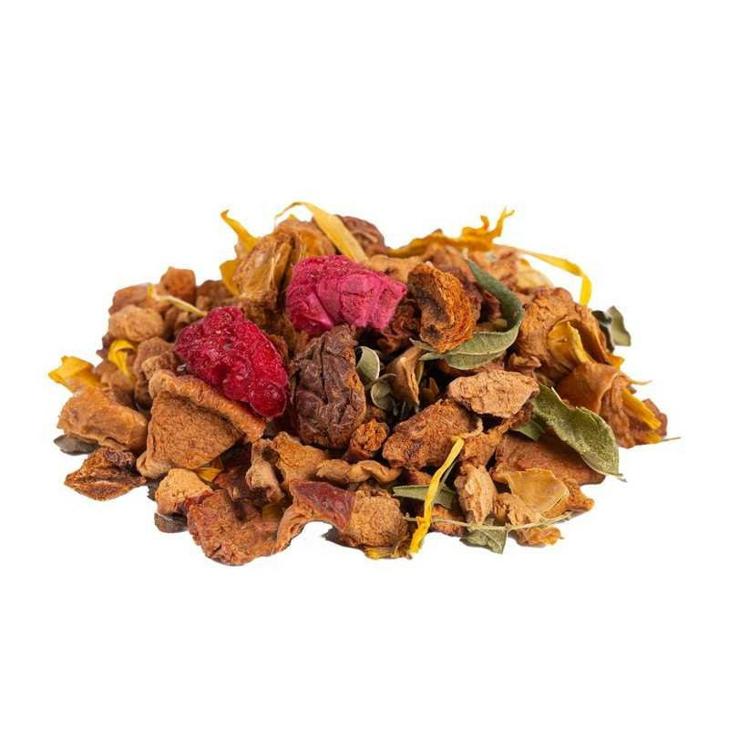 Ingrédients: Pomme, arôme naturel, Rooibos vert, verveine, écorces d'orange, souci, verveine entière, feuilles de mûre, framboise, passiflore, cassis. Mélange premium élaboré avec des ingrédients issus de l'agriculture durable et des arômes naturels.