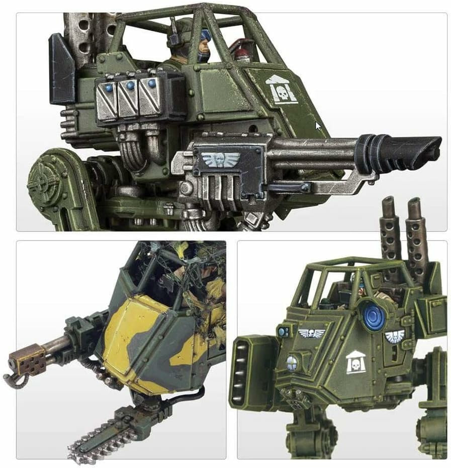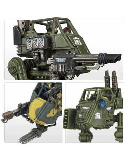 Ce kit plastique permet d'assembler un Sentinel Blindé, un marcheur léger doté d'une grande puissance de feu sur un châssis robuste. Ce kit dispose de tout un tas d'options, ce qui vous permet d'équiper votre Sentinel pour répondre aux exigences de n'importe quel champ de bataille avec un autocanon, un lance-flammes lourd, un lance-missiles, un multi-laser ou un canon à plasma. Vous pouvez également équiper votre marcheur d'une tronçonneuse Sentinel orientable pour une plus grande efficacité en combat rapproché, ainsi que d'un missile traqueur pour renforcer encore sa puissance de feu. Vous trouverez également de nombreuses options esthétiques, comme un projecteur et des lanceurs de fumigènes, des arrimages et des râteliers d'équipement supplémentaires, des bidons de carburant supplémentaires.