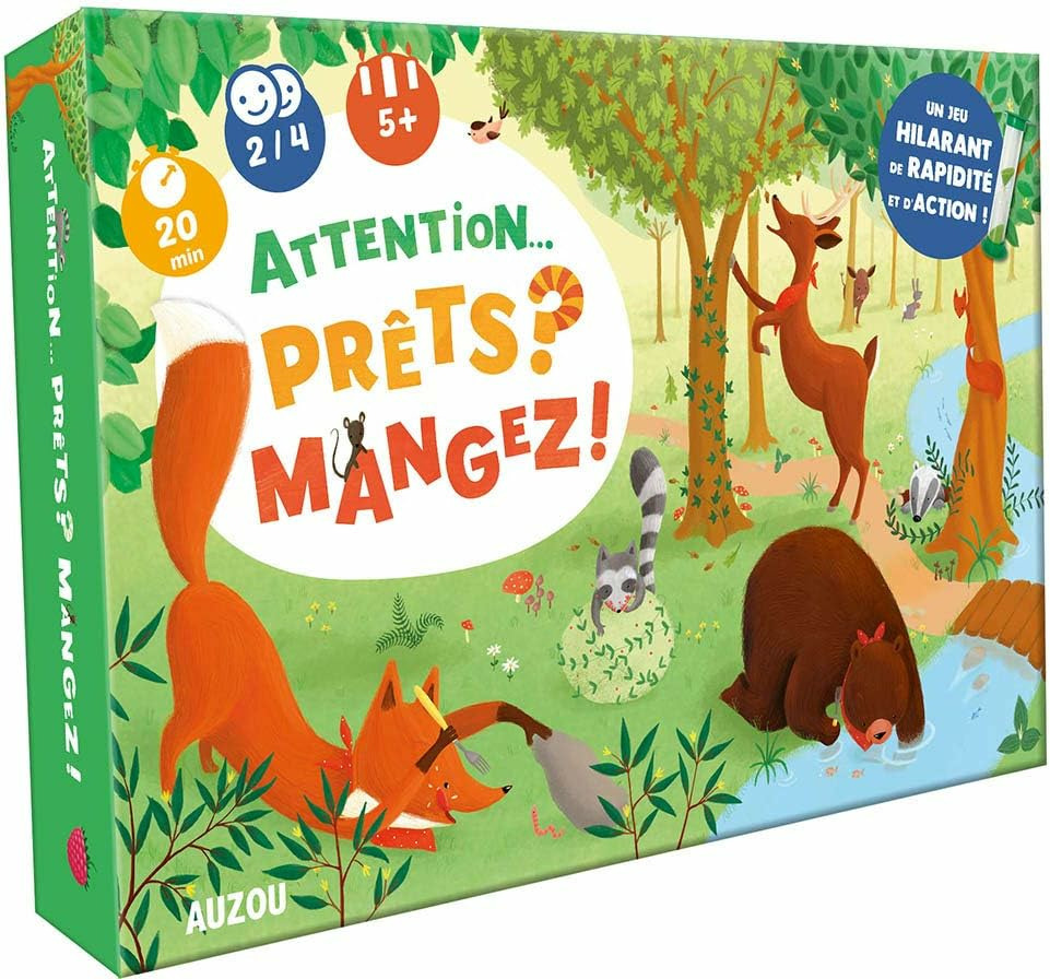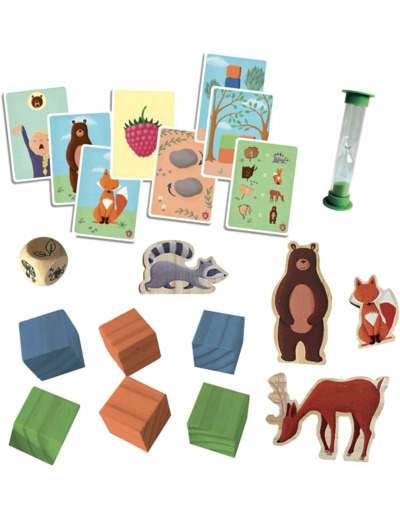 Vous voilà en plein milieu de la forêt et affamés ! Votre objectif ? Collecter un maximum de framboises pour gagner la partie ! Pour cela vous aurez le temps d’un sablier pour réussir le plus d’actions possibles : imiter un animal, construire un édifice avec les cubes, attraper l’ours en bois, lancer le dé et plein d’autres défis. Alors attention… Prêts ? Mangez !