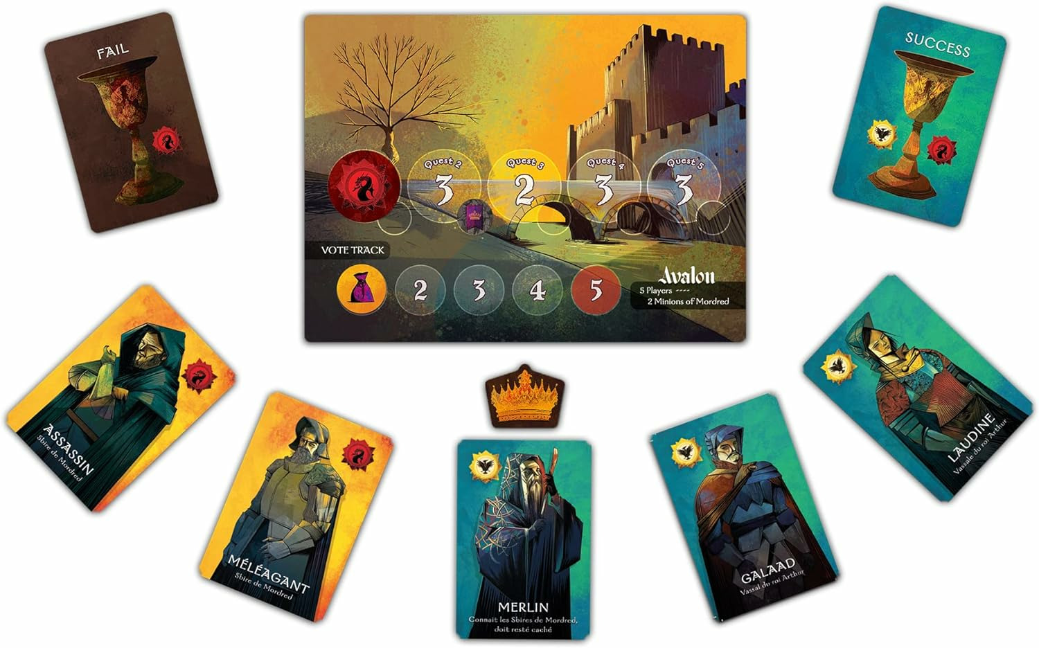 Les joueurs peuvent être des serviteurs Loyaux d’Arthur qui se battent pour le Bien et l’honneur, ou des laquais de Mordred œuvrant pour le Mal.