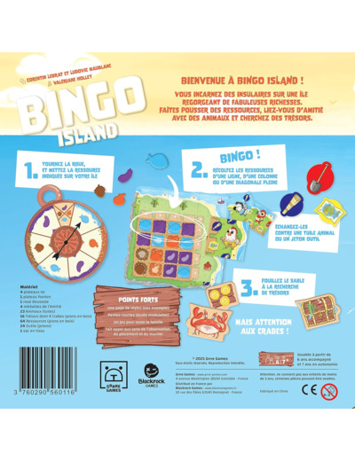 Enfin, cherchez dans le sable les trésors contenant des pièces d’or. Mais attention aux crabes ! Dès qu’un insulaire possède 4 trésors, la partie se termine.