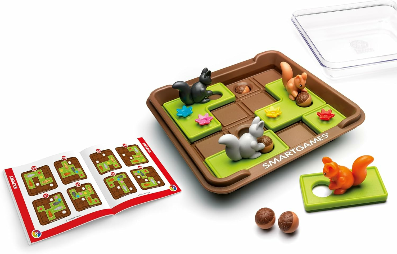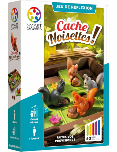 «Cache-noisettes» est un jeu de logique proposant 60 défis à résoudre, de facile à expert.