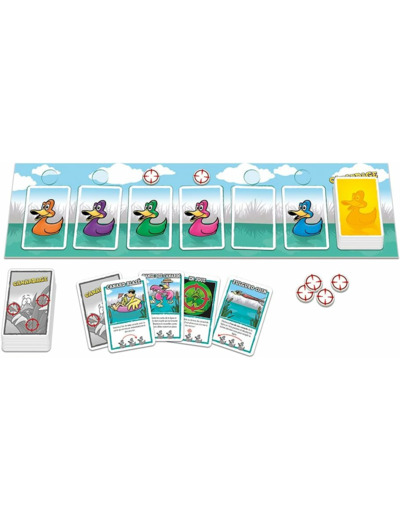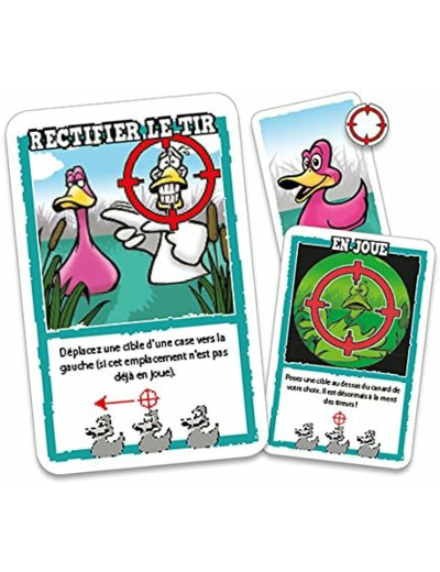 À chaque tour, vous devez simplement jouer l’une de vos 3 cartes. Les joueurs vont ainsi pouvoir viser, tirer, affecter la disposition des canards en se cachant derrière son voisin, etc. Mettez vos protégés à l’abris et canardez les volatiles adversaires car le dernier survivant sera le gagnant !