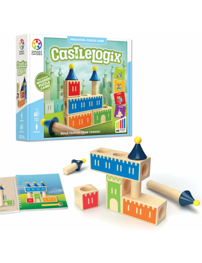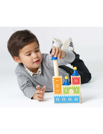 Muni de quatre blocs de bois, utilisables aussi bien à la verticale qu'à l'horizontale et de trois tours de différentes tailles, le jeune architecte devra reproduire le modèle de château qui lui est donné. A lui de trouver le montage des pièces pour y arriver.