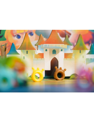 A ton tour de jeu lance simultanément les 3 dés et mets de côté ceux portant le symbole lune. Choisis un des dés restants et avance le pion du nombre de case(s) indiqué par ce dé. Après avoir déplacé le pion, choisis une de ces options : • Lance les dés et déplace-toi à nouveau de la même maière (tant qu'il te reste au moins un dé disponible, tu peux répéter cette étape). • Si tu choisis de ne plus te déplacer, prends la clef qui se trouve sur la case où tu te trouves. Ensuite, tente d'ouvrir le coffre au trésor ! Le coffre s'ouvre ! Prends un certain nombre de cristaux, selon la couleur de la clef. Accroche la clef utilisée à une tour du château. Ferme le coffre au trésor et remets-le en place. Le coffre au trésor ne s'ouvre pas. Remets le coffre en place et garde la fausse clef devant toi. Dès qu'un joueur obtient le nombre de cristaux requis, le jeu se termine et ce joueur gagne.
