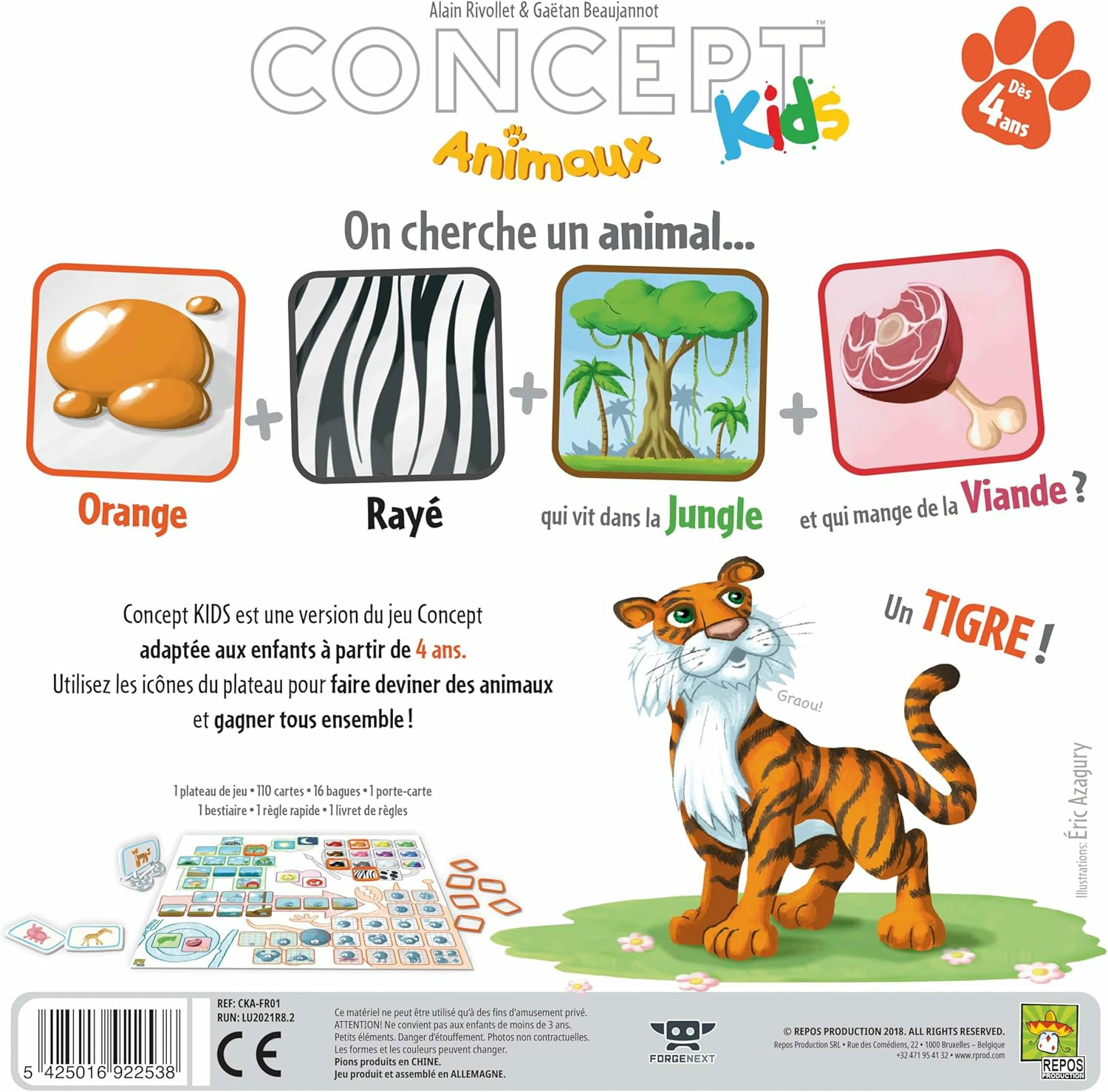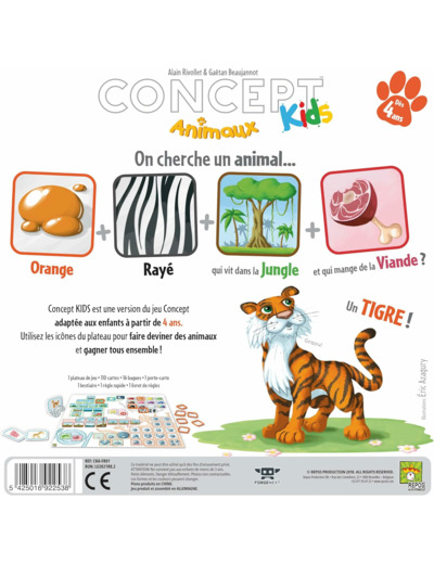 Concept Kids est une version du jeu Concept adaptée aux enfants à partir de 4 ans. Utilisez les icônes du plateau pour faire deviner des animaux et gagner tous ensemble ! Ici, pas besoin de parler, ni de savoir lire pour pouvoir communiquer !