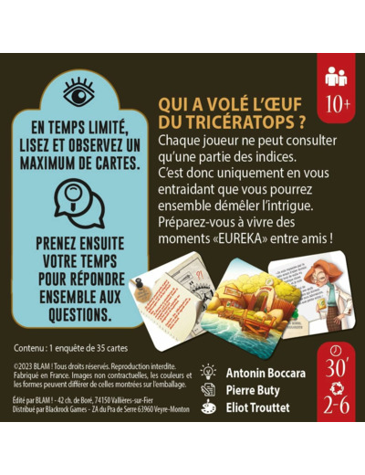 La mécanique de jeu est très simple et se résume en 2 phases : pour chaque enquête, d'abord les joueurs lisent et observent un maximum de cartes dans un temps limité. Puis ils prennent ensemble le temps nécessaire pour partager et recouper leurs infos afin de répondre à une série de questions autour de l'intrigue. Plus ils accumulent les bonnes réponses, plus ils accèdent à un rang d'enquêteur élevé !