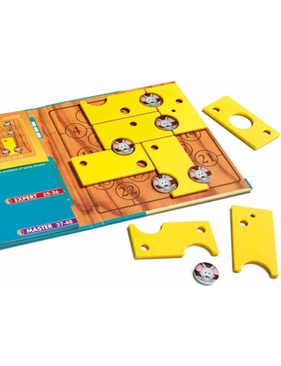 Les souris gloutonnes ! Saurez-vous placer les morceaux de fromage magnétiques sur le plan de jeu de telle sorte que les têtes des souris apparaissent à travers les trous de la meule de gruyère ?